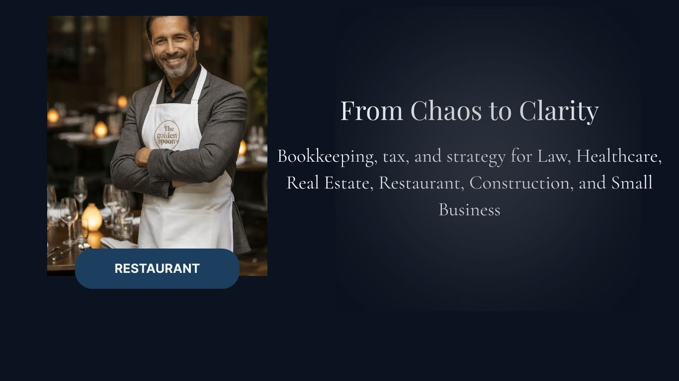 From kitchen to cash flow, we keep your restaurant's finances cooking.